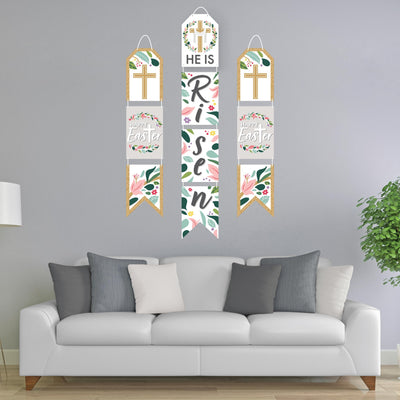 Religious Easter - Hanging Vertical Paper Door Banners - Christian Holiday Party Wall Decoration Kit - Indoor Door Decor