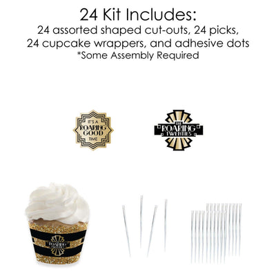 Roaring 20's - 1920s Art Deco Jazz Party Cupcake Wrappers and Treat Picks Kit - Set of 24