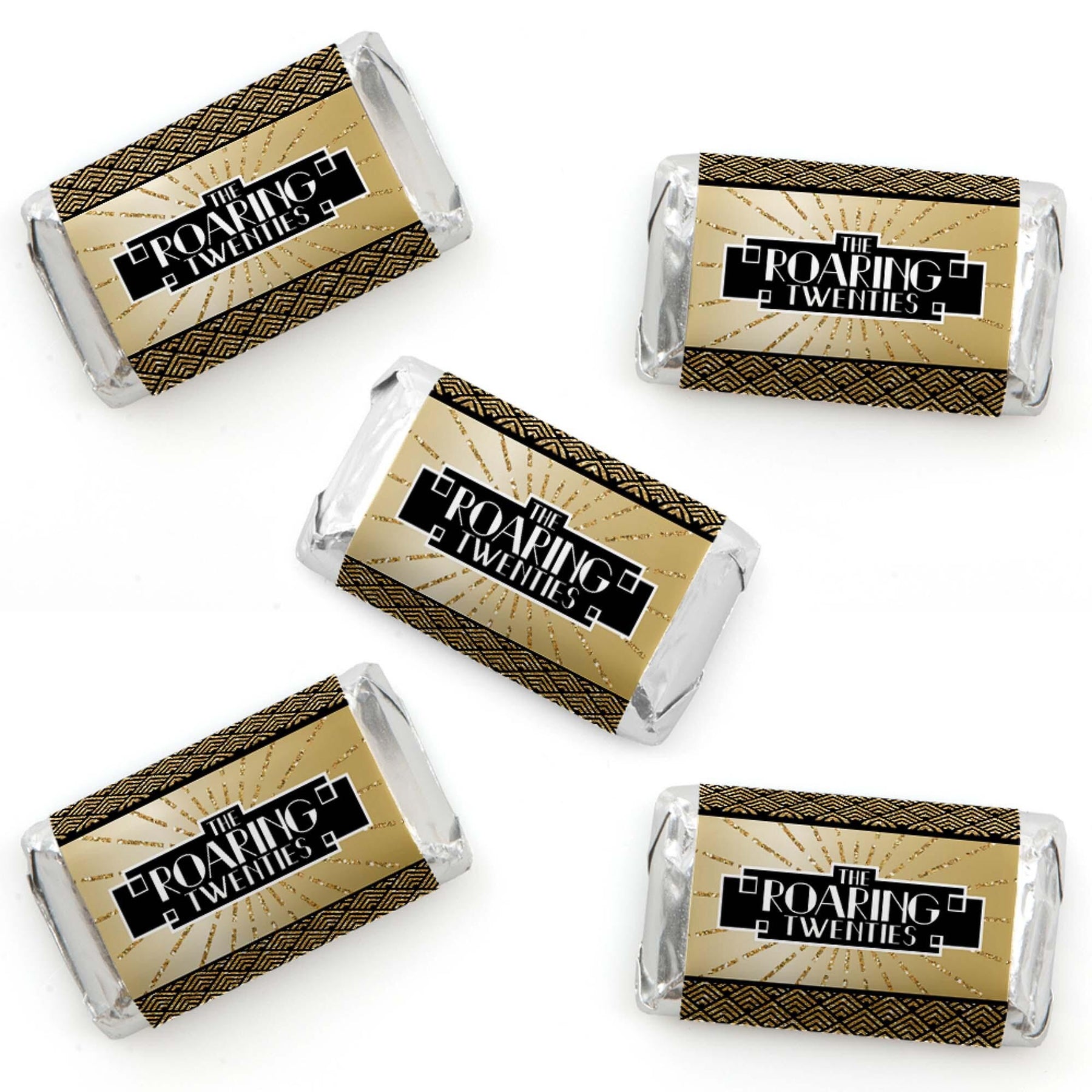 Roaring 20's - 1920s Art Deco Jazz Party - Mini Candy Bar Wrapper Sticker Labels Decade Party Favors: