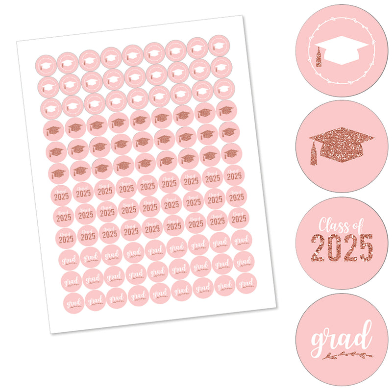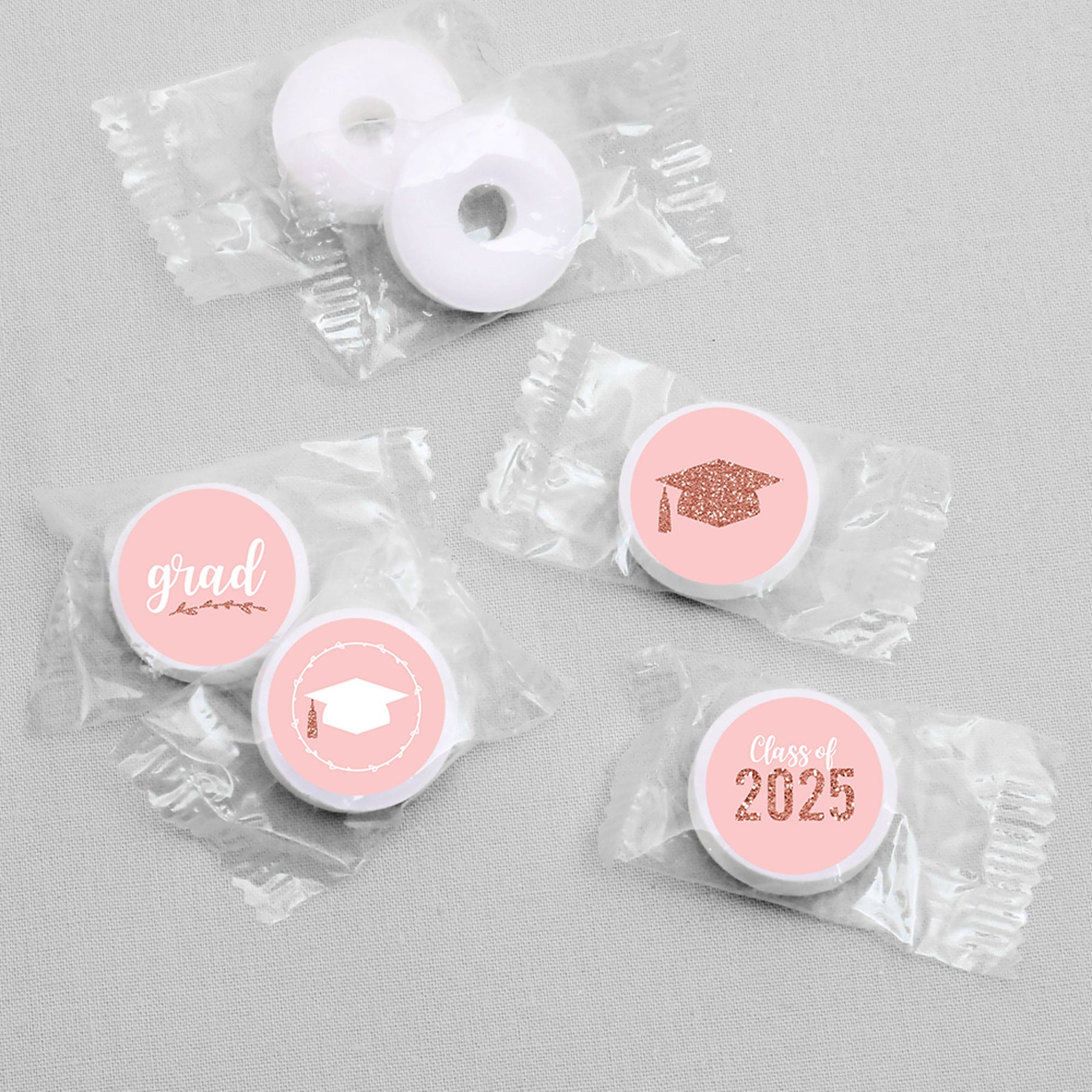 Give your party guests a Rose Gold Grad themed Hershey's® Kisses® party favor to enjoy during the event or take home and enjoy later. This set of Rose Gold Grad Hershey's® Kisses® stickers are a fun way to add a little flair to all areas of your party. Simply peel and stick each label to the bottom of a chocolate Kisses® candy, LifeSavers® candy or any other similar-sized round candy. Use your decorated candies scattered down the length of your buffet table, at your candy buffet or in party favor bags for your guests to take home. Each set of 108 stickers comes with 4 coordinating designs that everyone will adore. Hershey's® Kisses® stickers are the party supply you have been looking for to add a little extra touch to your celebration.