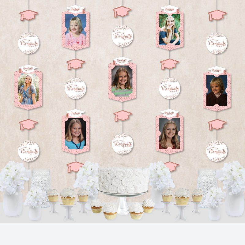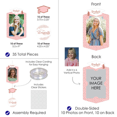 Rose Gold Grad - Graduation Party DIY Backdrop Decor - Hanging Vertical Photo Garland - 35 Pieces