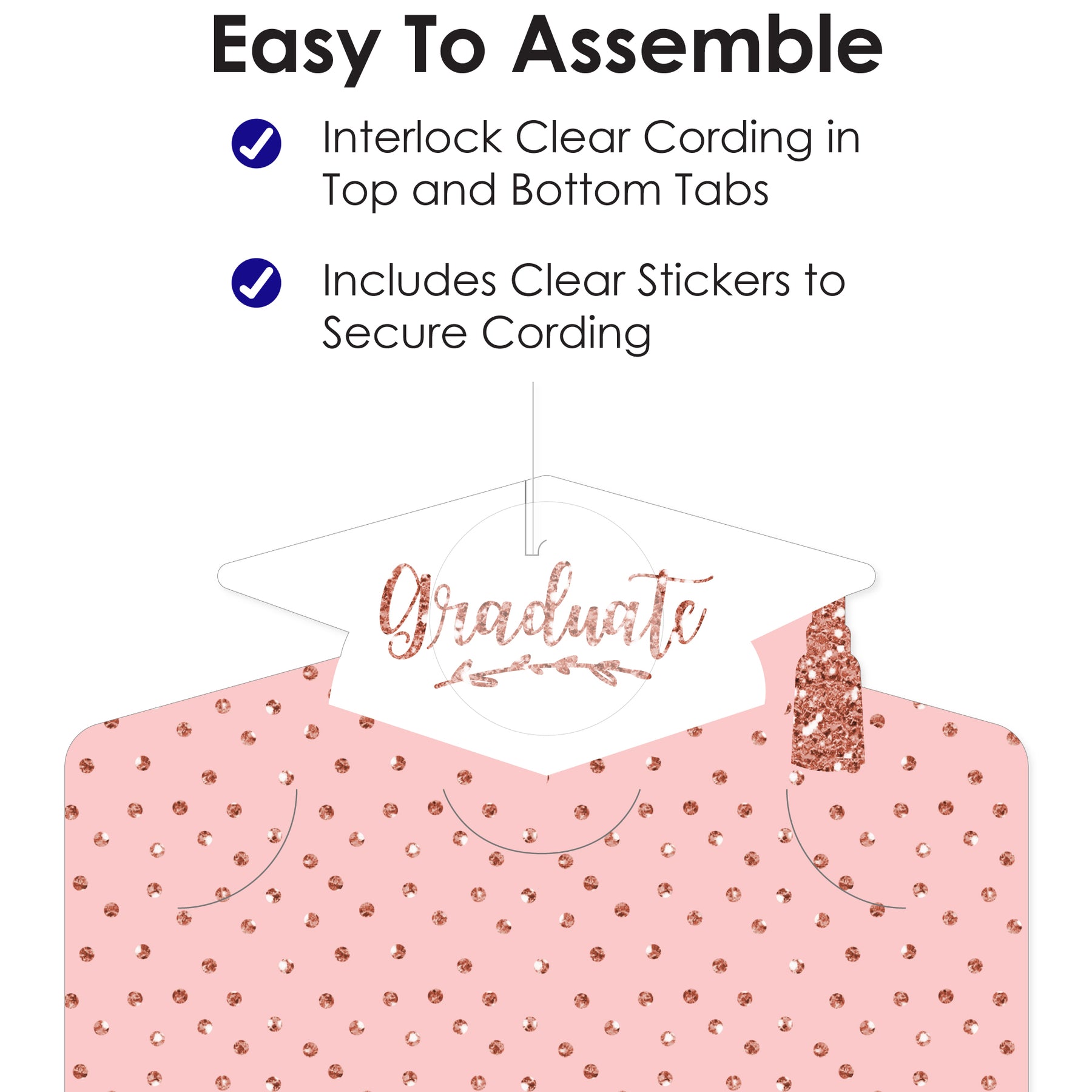 Easy to Assemble - Interlock Clear Cording in Top and Bottom Tabs and Use Clear Stickers to Secure Cording