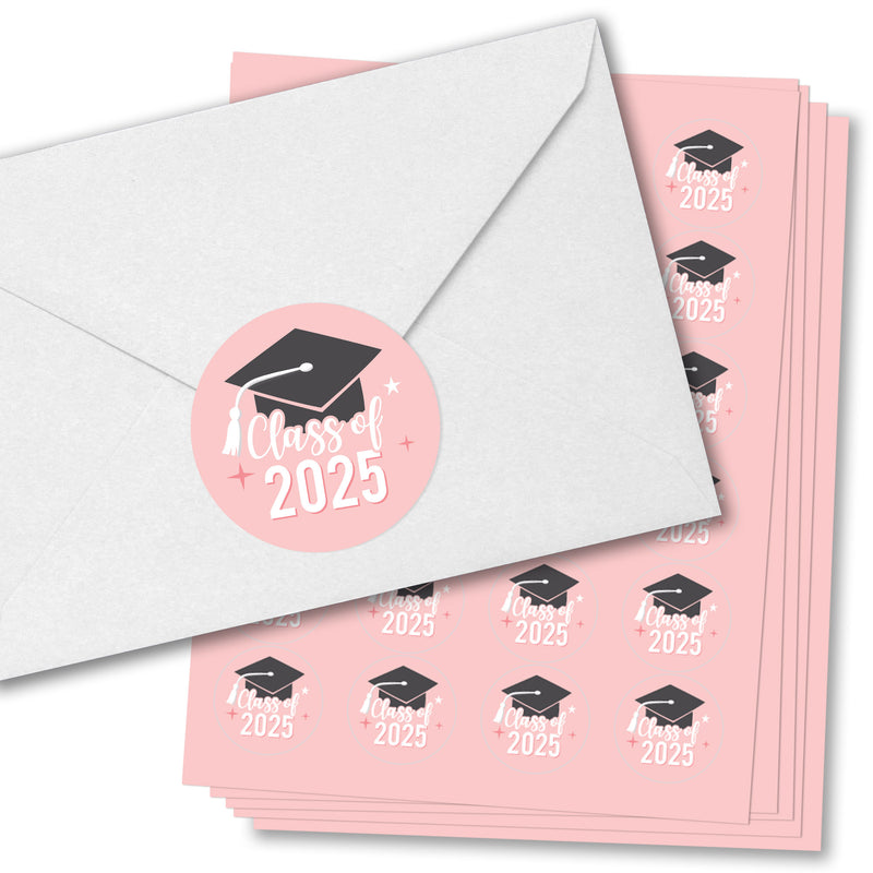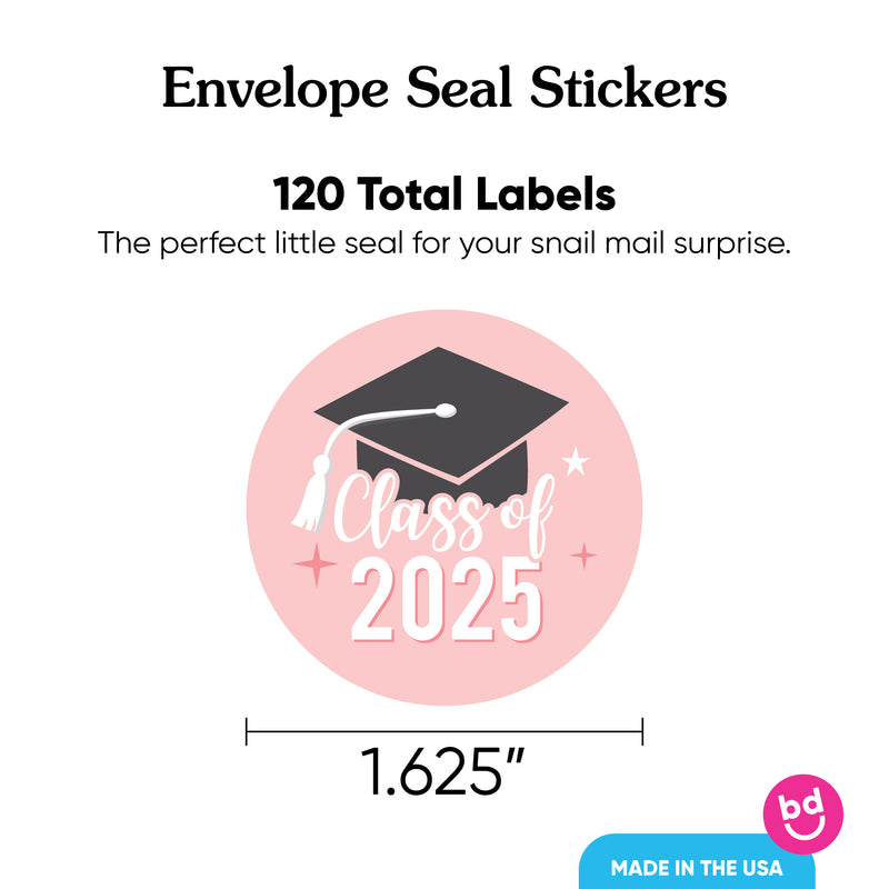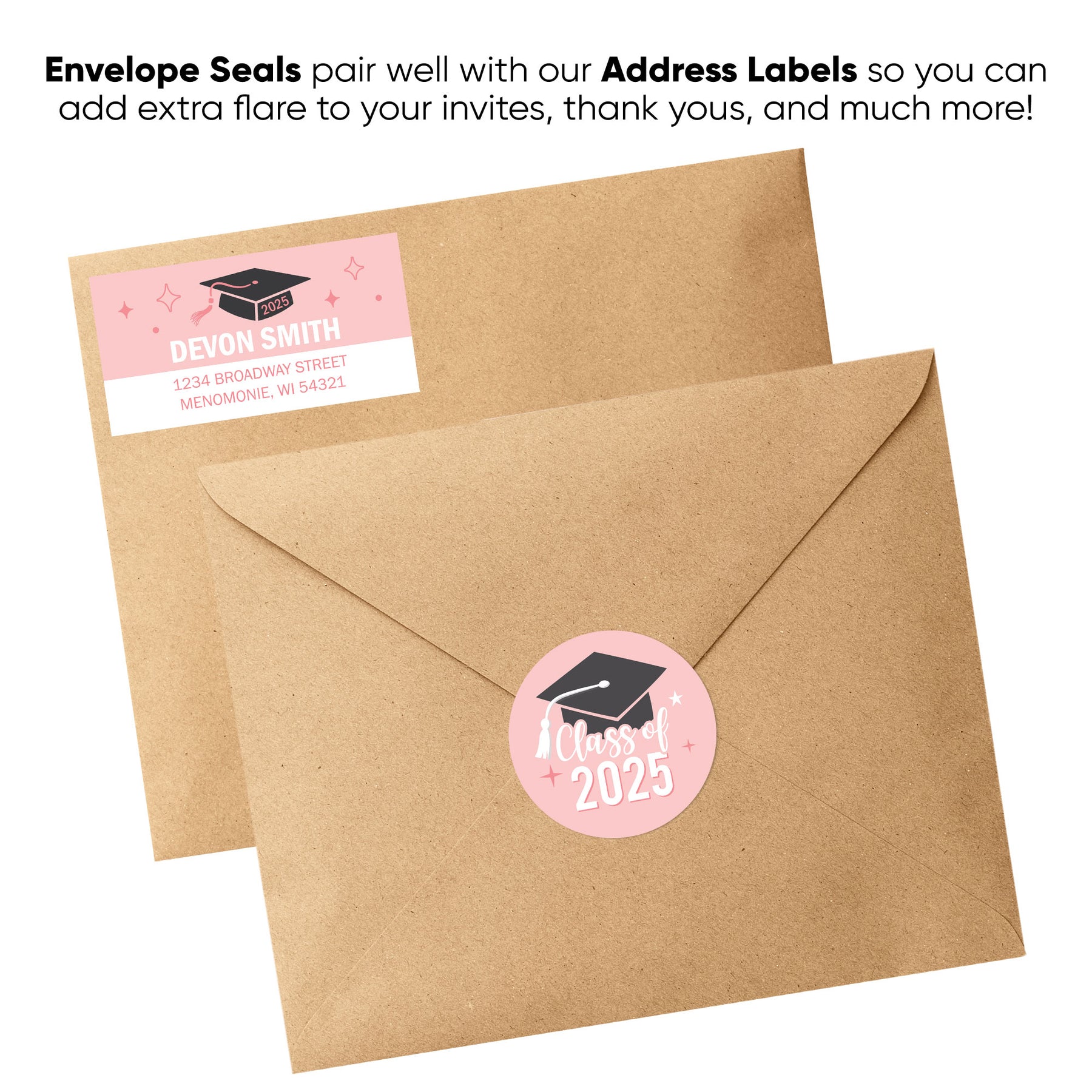 Seal the deal on your graduation party prep with our Class of 2026ย Rose Gold Graduation Envelope Seal Stickers! These round stickers add a personal, polished finish to every invite or thank you cardโno licking required (because, gross). Just peel and stick for an easy, adorable way to show off your gradโs big moment. With 120 seals total, thereโs plenty to use on envelopes, favors, and anything else you want to dress up. Designed to match our graduation collections and printed in-house at our Wisconsin facility, theyโre a simple way to add major charm to your snail mail. Pair these Envelope Seals with our Custom Return Address Labels to bring even more school color spirit to your graduation announcements.