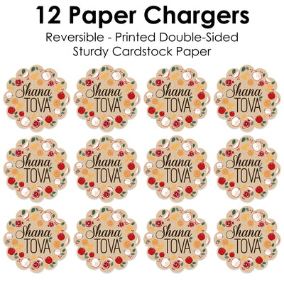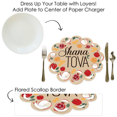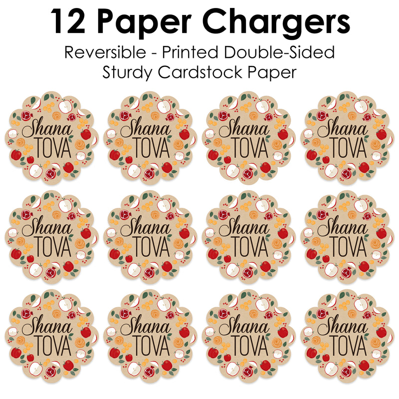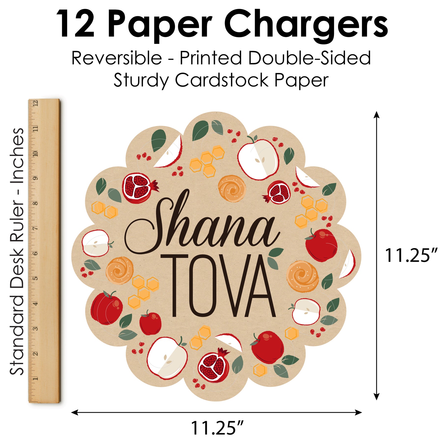 Refine your table place setting at your Jewish New Year Party when you use the set of 12 Rosh Hashanah Paper Chargers. A decorative base for your tableware, paper chargers are an excellent substitute for doilies and an easy solution to creating an exciting look at your table. To use, place a paper charger at each guest’s place setting, and flare up the scallop border for a stylish finish. Then add a plate to the center of the paper charger. Each plate will be highlighted and between meals, your table will maintain a decorative and coordinated appearance. These disposable paper chargers will also make cleanup easy after the celebration is over. Professionally printed double-sided on sturdy cardstock paper with a photo-like shine, chargers are reversible and can be used on the backside for an alternate look. Each Rosh Hashanah chargers measure 11.25” in diameter. Impress your guests when you use the Rosh Hashanah Paper Chargers at your celebration.
