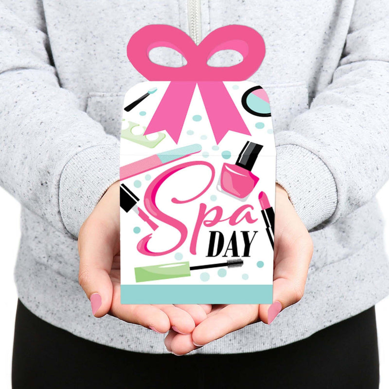 Spa Day - Square Favor Gift Boxes - Girls Makeup Party Bow Boxes - Set of 12