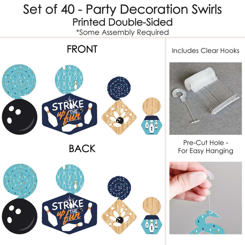 Strike Up the Fun - Bowling - Baby Shower or Birthday Party Hanging Decor - Party Decoration Swirls - Set of 40: