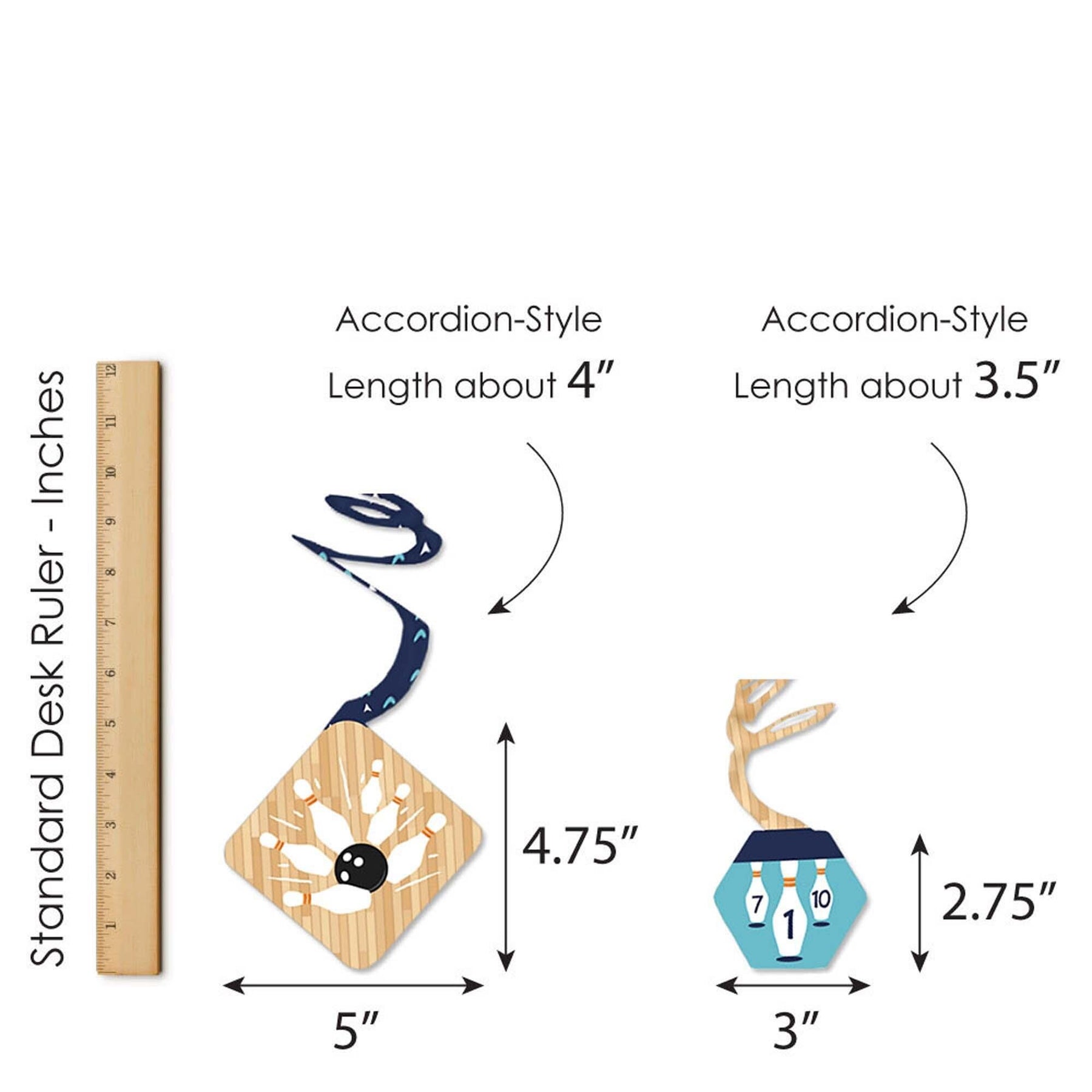 Take your Birthday Party or Baby Shower to the next level when you add Strike Up the Fun - Bowling Party Decoration Swirls. Professionally printed and double-sided on heavy-duty cardstock paper, this hanging decor is a set of 40 (10 count per shape) that hang below an accordion-style spiral with included clear hooks. Each decoration swirl in the 40-piece set has a pre-cut hole for easy assembly using the included clear hooks. Party Decoration Swirls will arrive flat. Take a clear hook and insert the bottom bar into the pre-cut hole. Once the clear hook is fastened, gently stretch the swirl and hang it up. Add a pop of color when displayed over the gift table or dessert buffet. Or add your own string if you would like them to hang lower in your party space.