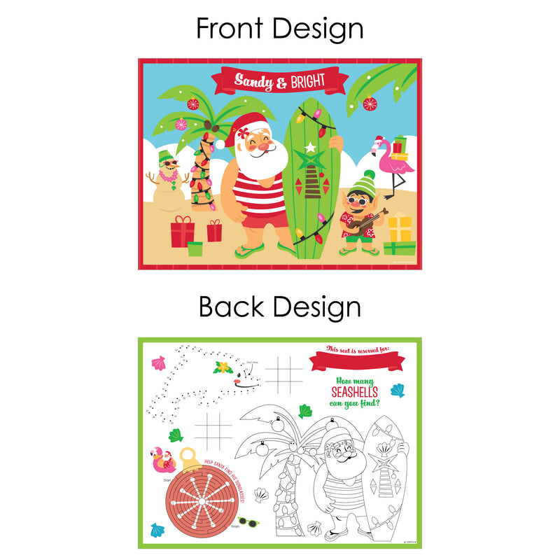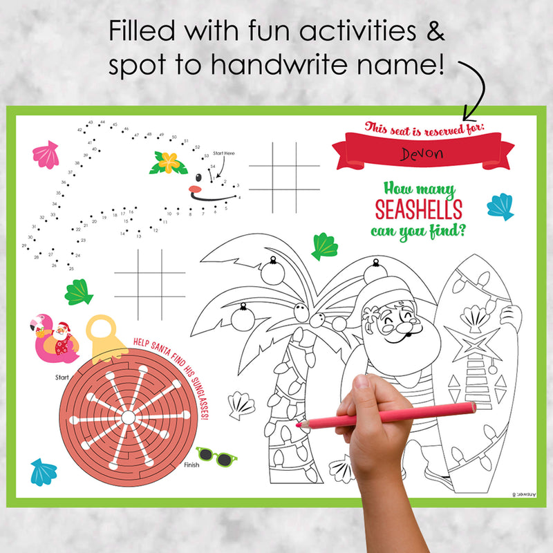Tropical Christmas - Paper Beach Santa Holiday Party Coloring Sheets - Activity Placemats