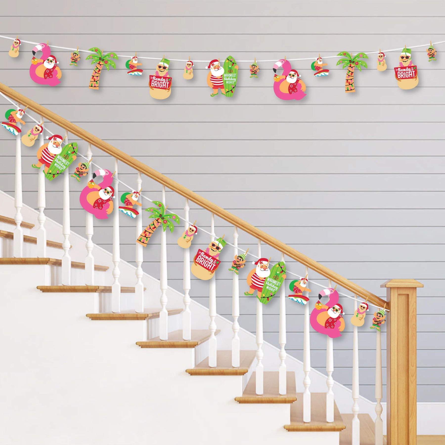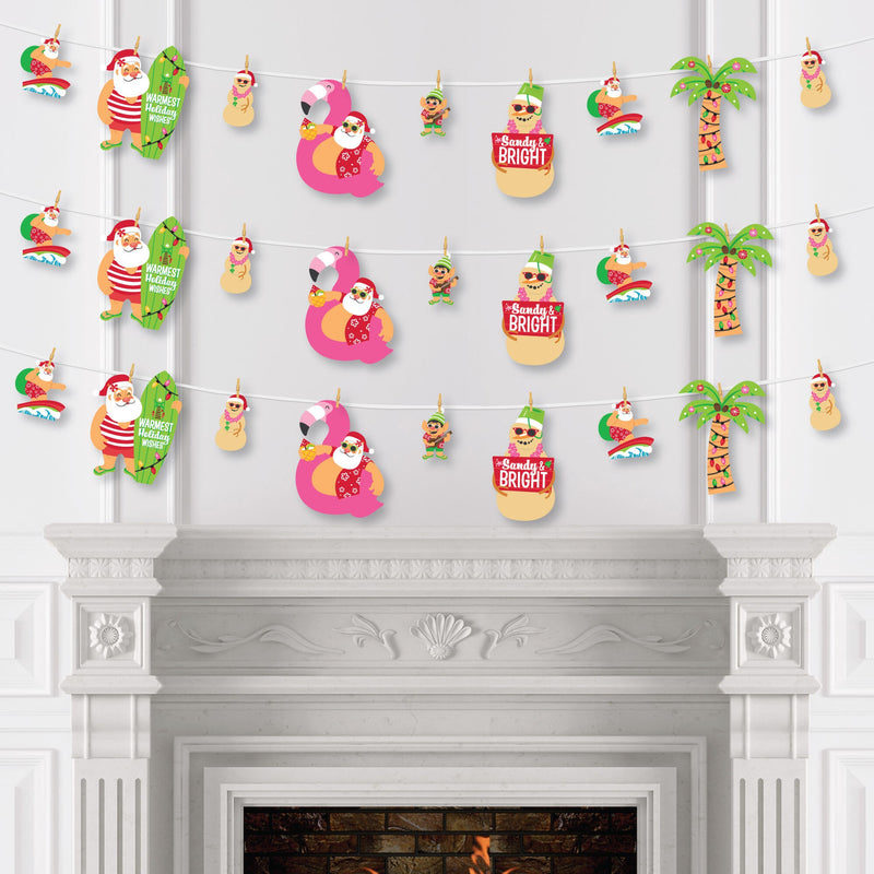 Tropical Christmas - Beach Santa Holiday Party - Clothespin Garland Banner - 44 Pieces