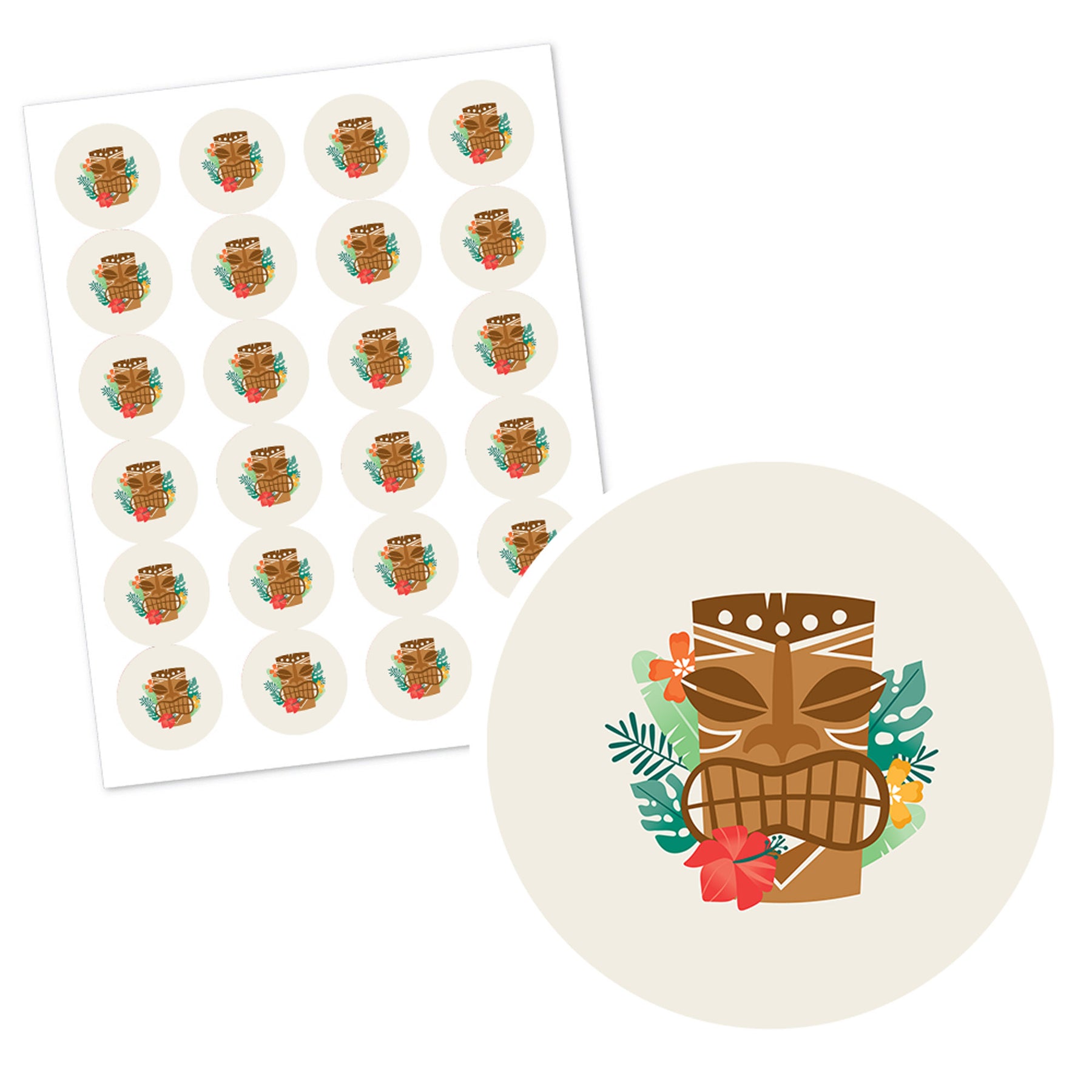 Personalized Tropical Luau Circle Sticker Labels - 24 Ct