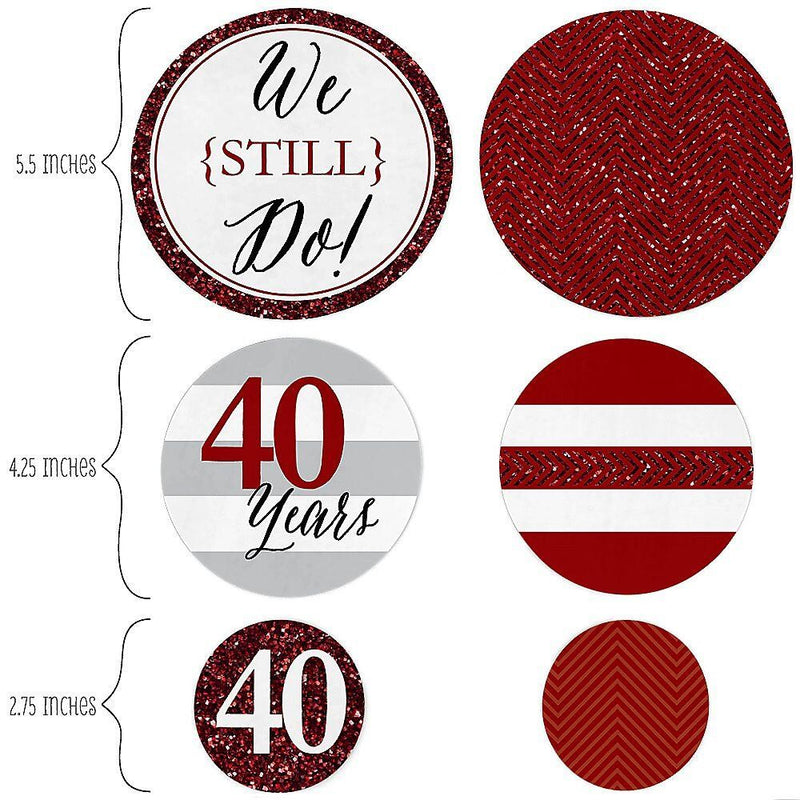 We Still Do - 40th Wedding Anniversary confetti kits are the perfect do-it-yourself craft supply for your anniversary event. Confetti kits come with three different sizes of circles, all perfectly coordinated. These extra large party circles can be placed the length of a table to create a fun, dimensional table runner, clipped to ribbon as a We Still Do - 40th Wedding Anniversary themed garland banner or glued to craft sticks and added to your candy display at the buffet table or used with centerpieces at the dining tables. With a hole punch, you can also create great party tags. Get creative - table confetti kits make it easy to create fun We Still Do - 40th Wedding Anniversary decorations!