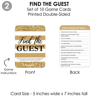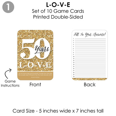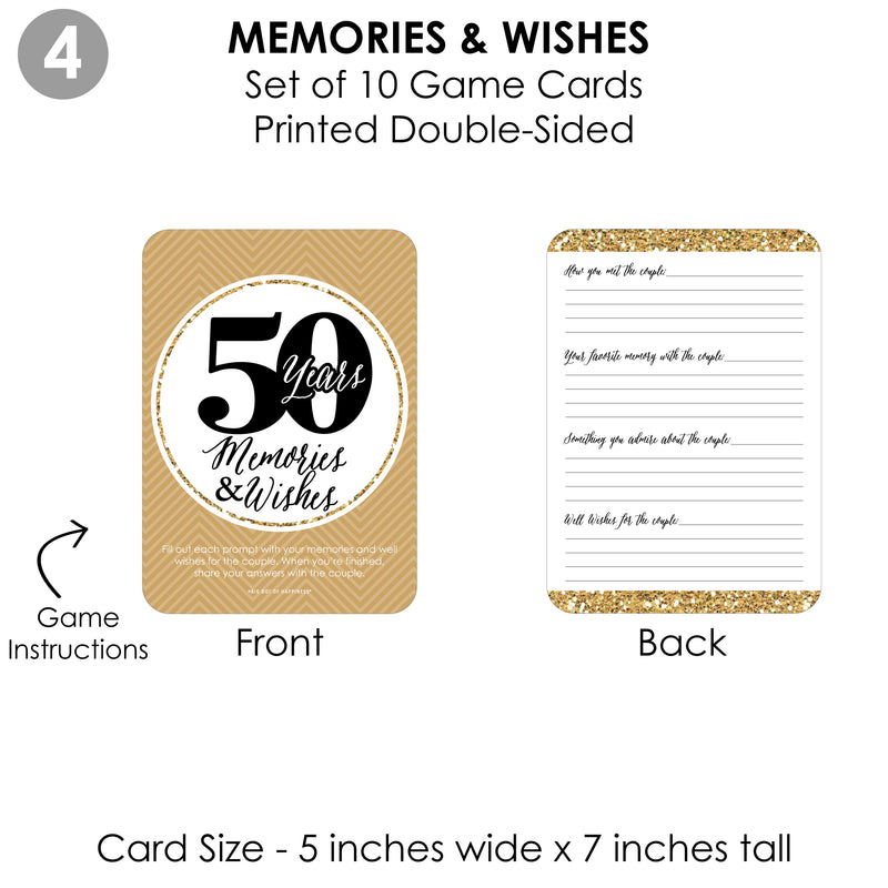 Create a memorable Anniversary Party when you play We Still Do - 50th Wedding Anniversary Gamerific Bundle. This game pack includes 4 different games: L-O-V-E, Find the Guest, He or She Quiz, and Memories & Wishes. Professionally printed on sturdy cardstock paper, our Gamerific Bundle will arrive ready to play and each game card is printed with easy-to-follow playing instructions. For added fun, make each game competitive by adding a time limit and offering a prize to the winning party guest.