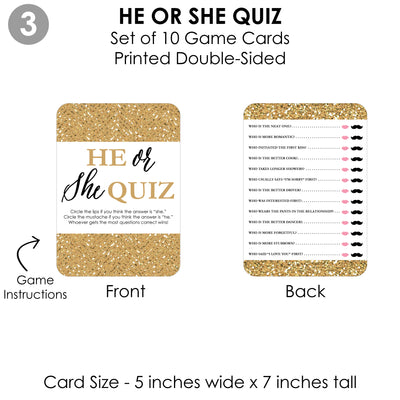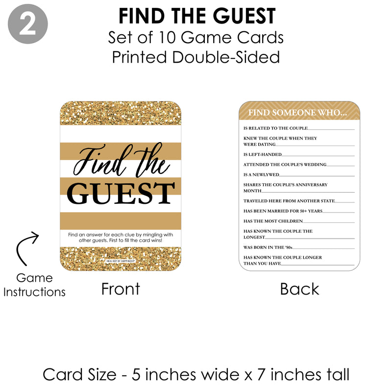 • Games Included: L-O-V-E, Find the Guest, He or She Quiz, and Memories & Wishes