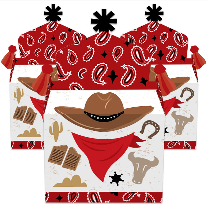 Western Hoedown - Treat Box Party Favors - Wild West Cowboy Party Goodie Gable Boxes - Set of 12